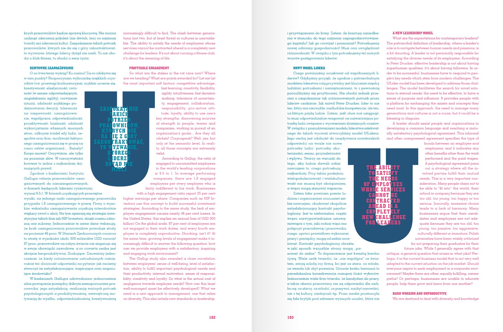 A problem? No way! Actually this is an irresistible challenge for a magazine designer like myself. And this is the result – issue 14 (2015) of CR Navigator, a bilingual periodical about CSR (Corporate Social Responsibity). The magazine is published on behalf of the Polish branch of Goodbrand and each issue features a unique design approach based on the original layout. More information here.